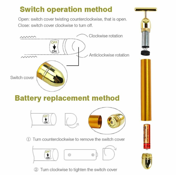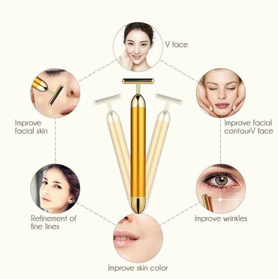 24k Gold Energy Beauty Bar Electric Vibration Facial Massager T-Shaped Anti-Wrinkle | 6000 Vibrations/Min | Waterproof | Dual Head Design
