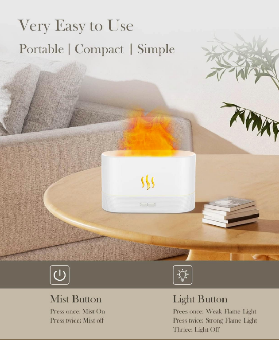 Realistic Flame Effect: Smart LED lights + cool mist create touchable flame illusion with 2 brightness modes
