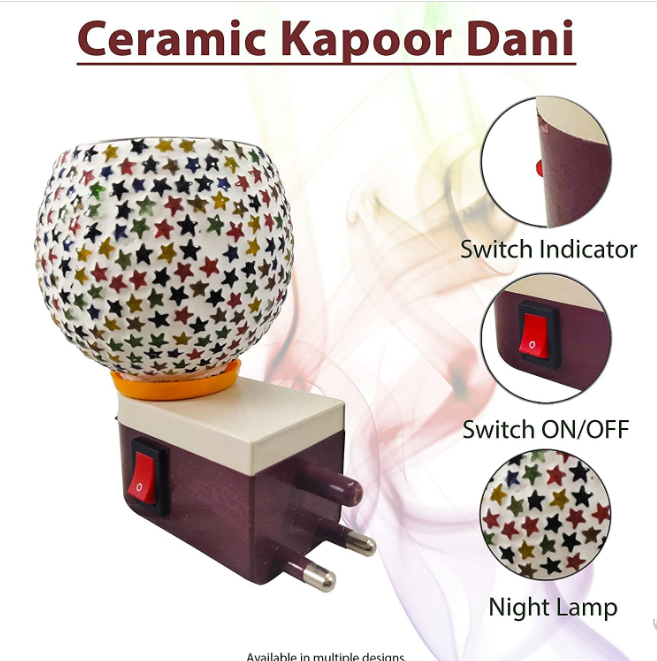Multicolor Ceramic Aroma Diffuser Kapoordani – Traditional Oil Burner LED Night Light | Switch Control | Camphor & Essential Oil Compatible | Ceramic Design