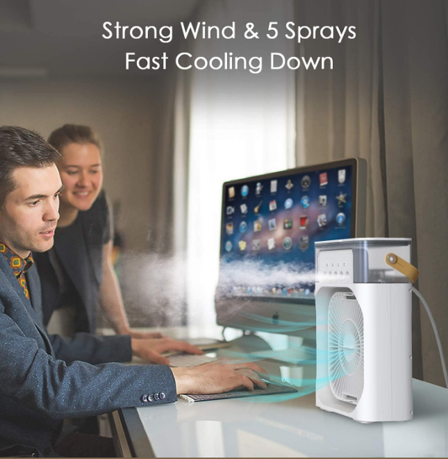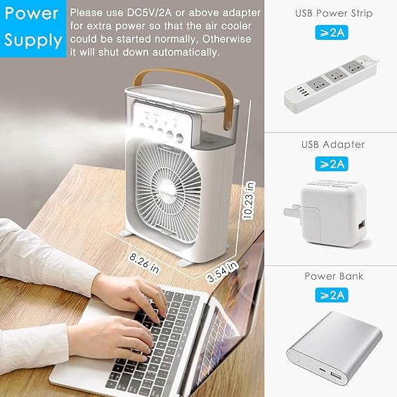 Beat the heat with the Portable Mini Air Conditioner. This innovative 3-in-1 device combines air cooling, humidifying, and air purifying functions in one compact unit. Perfect for personal cooling at home, office, or anywhere you need instant relief.